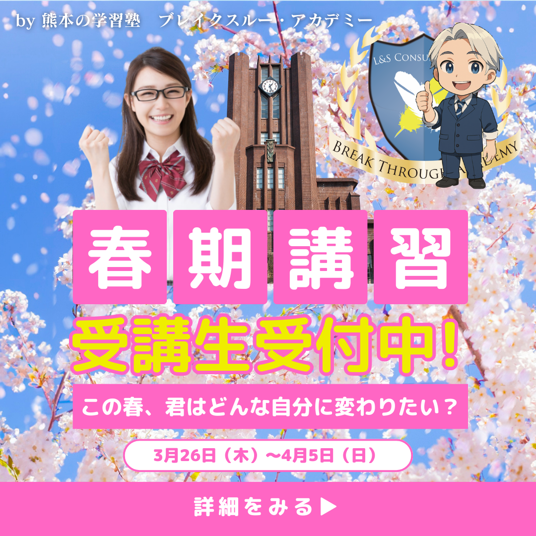 勉強は攻略できます。あとはあなた次第。”答え”が欲しい方は是非当塾へお越し下さい。熊本の個別指導型学習塾ブレイクスルー・アカデミーは、そういう場所です。