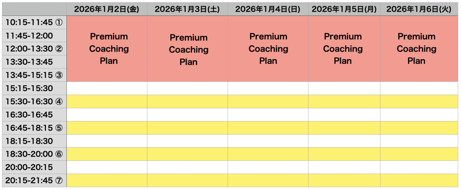 今回は去年と比べてプランに幅を持たせました。特に受験生が多く、この2週間は本当に密に取り組んでいただく必要があることから、前半の時間帯の全てを「プレミアムコーチングプラン」の受講生に寄せました。