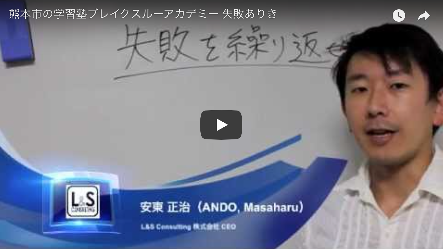 https://youtu.be/NAnLeHQ8KdQ こんにちは。熊本の教育&勉強攻略アドバイザー、ブレイクスルー・アカデミー代表の安東正治です。 先日...