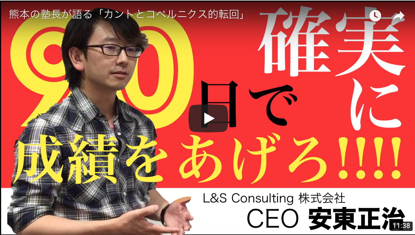 https://youtu.be/4pSZwN6iwqI こんにちは。熊本市中央区の勉強戦略コンサルティング個別指導塾、ブレイクスルー・アカデミー代表の安東正治です。 ...