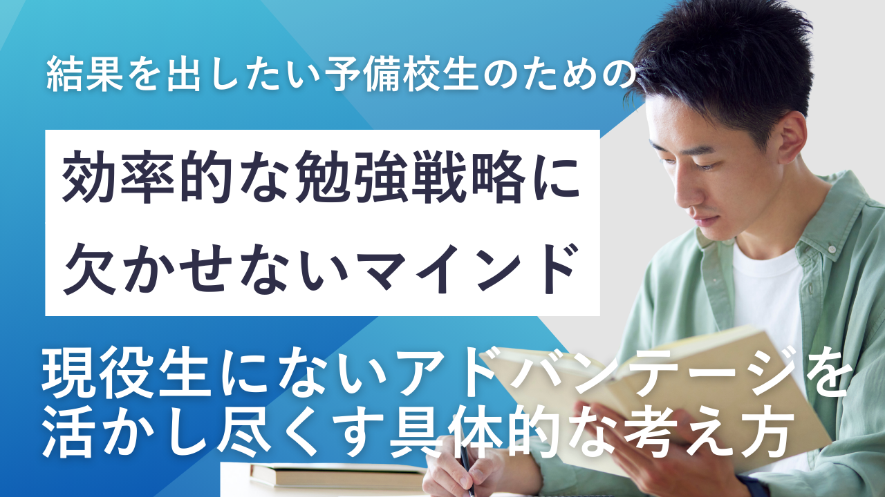 当塾は効率を何よりも重視します。ただこれは、単純な”要領”を意味しません。長期スパンで考え、入試当日に点数が最大化するための効率を考えます。すると、学校のように強制的に「今日この日に何をするか」を制約される勉強が最も非効率であるという結論に至りました。そして、予備校生は特に、そういう縛られ方をしている場合ではない立場です。だから、次こそ合格するためには、これまで以上に効率的な勉強をやらざるを得ないわけです。
